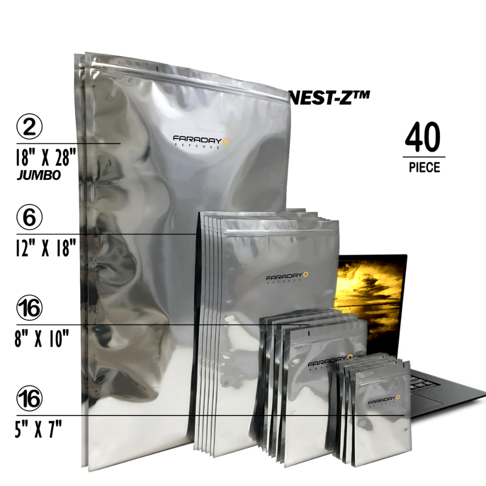 The Faraday Defense NEST-Z EMP Bag is designed to protect electronics against harmful electromagnetic radiation and electrical currents that would otherwise destroy it. Aluminum layers provide a static-safe environment for sensitive electronic devices. Strong, heavy-gauge, polyester layers help prevent sharp objects from puncturing and destroying the bags effectiveness. The NEST-Z bag is heat-sealable and suitable for vacuum packing.
