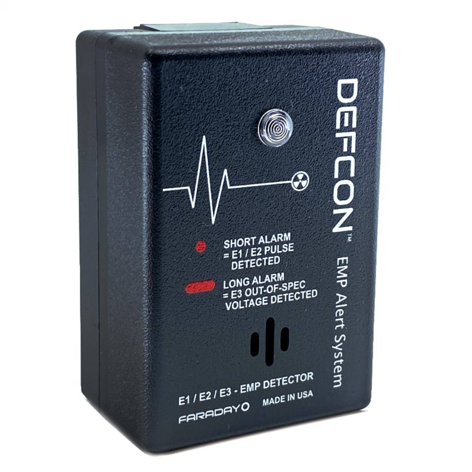 The Faraday DEFCON™ EMP Alert System is a cutting-edge device designed to detect electrical disturbances caused by electromagnetic pulses (EMP) or solar coronal mass ejections (CME). It monitors power lines and ambient air for potentially damaging disturbances and provides audible warnings to take protective measures.