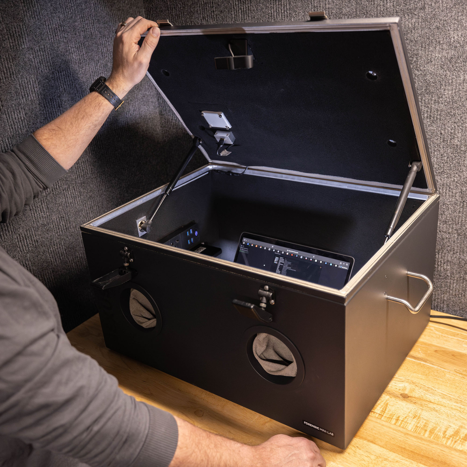 The NEXUS Forensic Mini-Lab is an industry-leading RF shielded forensic workstation, engineered for professionals working in data security, intelligence analysis, and cybercrime investigations. Its Faraday signal blocking chamber eliminates all external wireless interference, providing an isolated work environment for examining electronic devices.