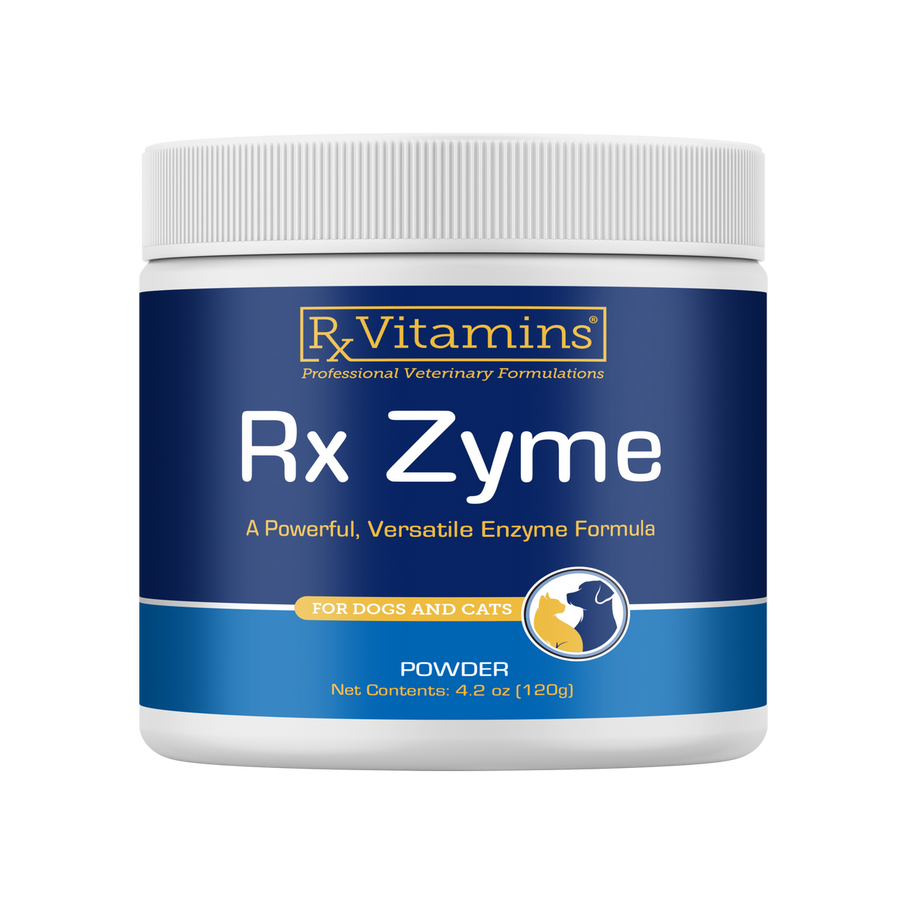Rx Zyme Powder by Rx Vitamins is a premium digestive supplement for pets. Scientifically formulated to provide enzymatic support, this powder aids in nutrient absorption and promotes gastrointestinal health. Its easy-to-use format makes it ideal for mixing with food, offering a convenient solution for pet owners who want to improve their pets' digestive systems and overall vitality.