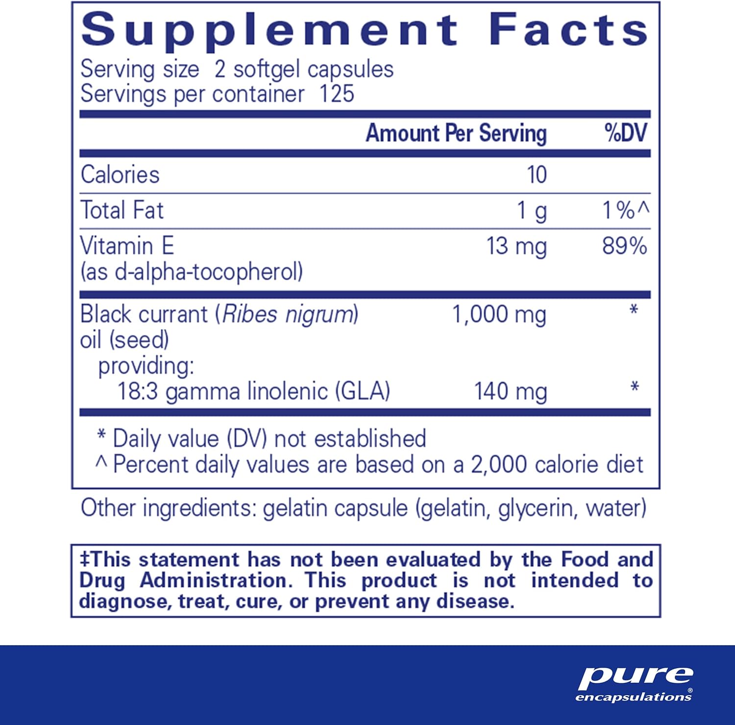 Pure Encapsulations Black Currant Seed Oil Immune Support Vegan 250 Softgels