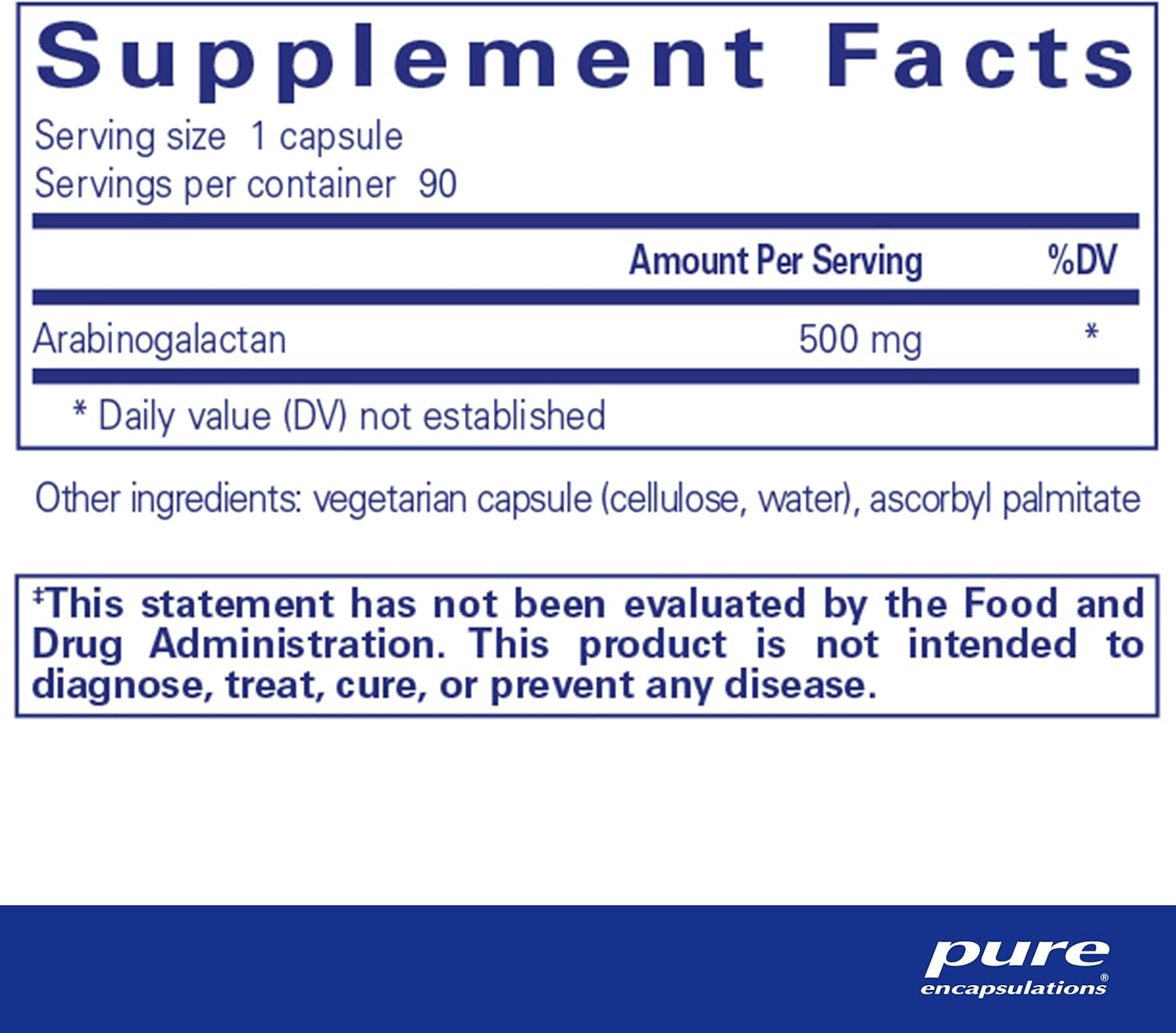Ingredients Larch arabinogalactan Hypoallergenic plant fiber (cellulose) Vegetarian capsule (cellulose, water)