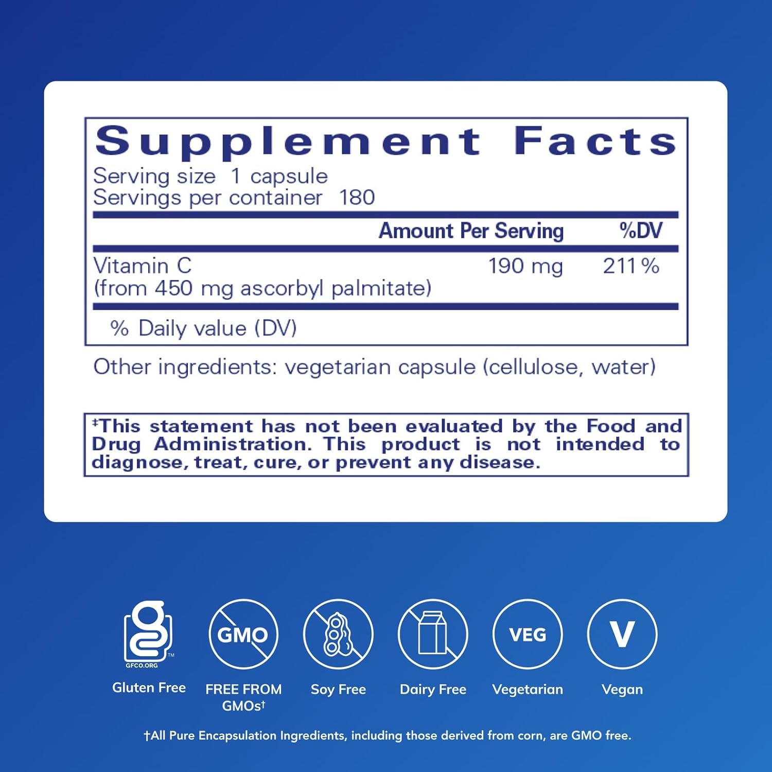 Description Pure Encapsulations Ascorbyl Palmitate is a highly bioavailable form of vitamin C designed to help support immune system function and antioxidant activity. This fat-soluble derivative of vitamin C aids in iron absorption and contributes to the formation of red blood cells, making it a valuable addition to daily wellness routines.