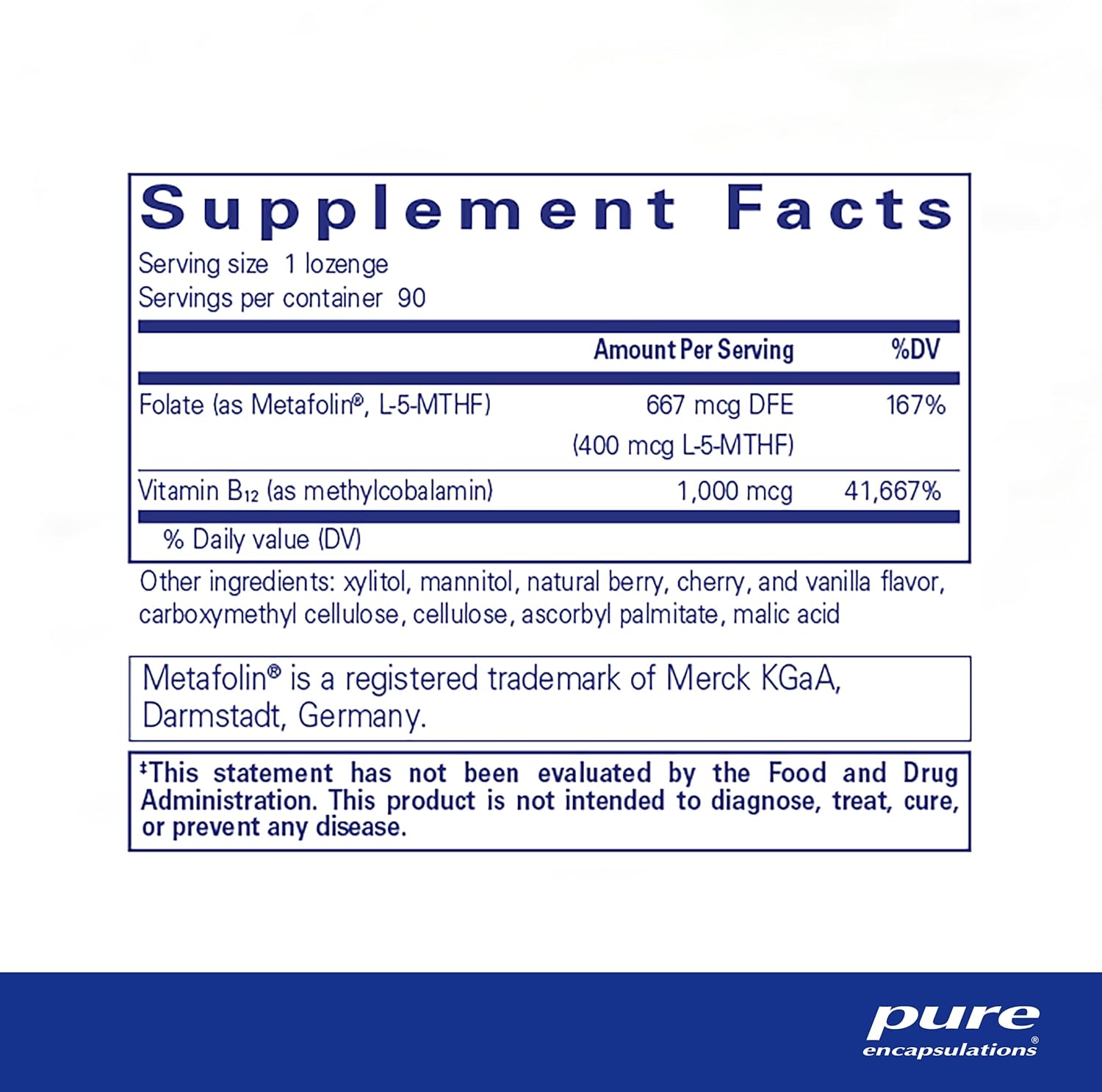 Pure Encapsulations PureMelt B12 Folate Supports Energy Cell Health 90 Lozenges