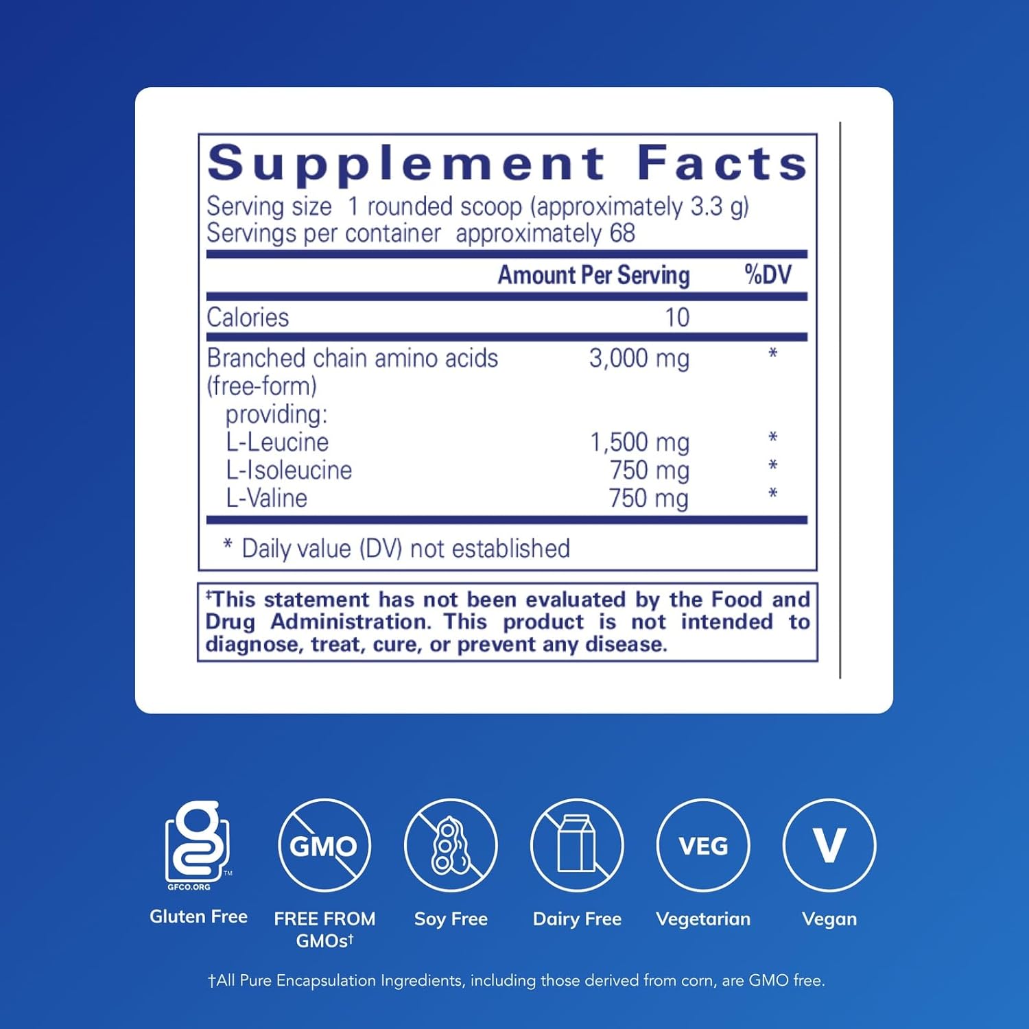 Pure Encapsulations BCAA Powder Muscle Function Support Supplement 8 Ounces