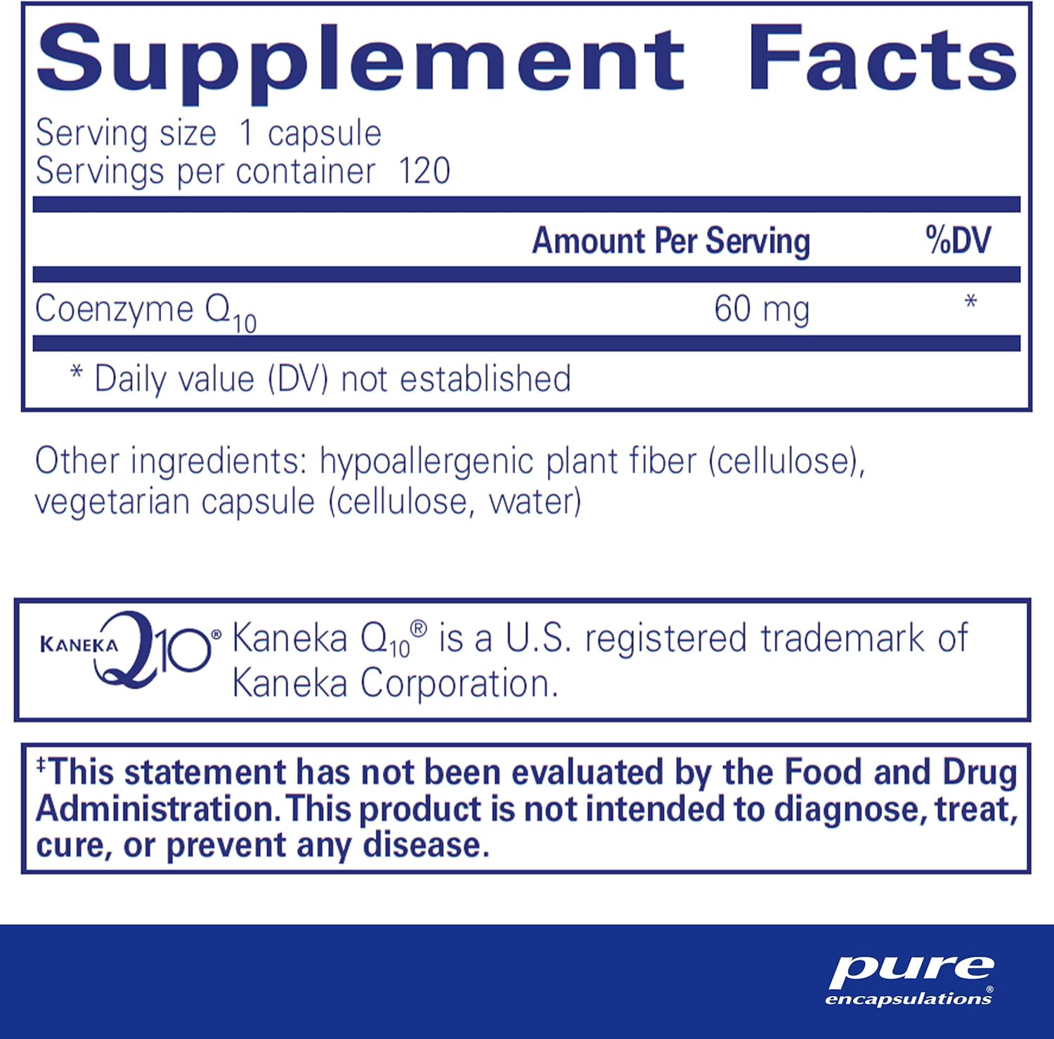 Description Pure Encapsulations CoQ10 60 mg is a premium coenzyme Q10 supplement designed to support cellular energy and cardiovascular function. This formula helps maintain optimal energy production within cells, especially in tissues that demand high energy such as the heart and brain.