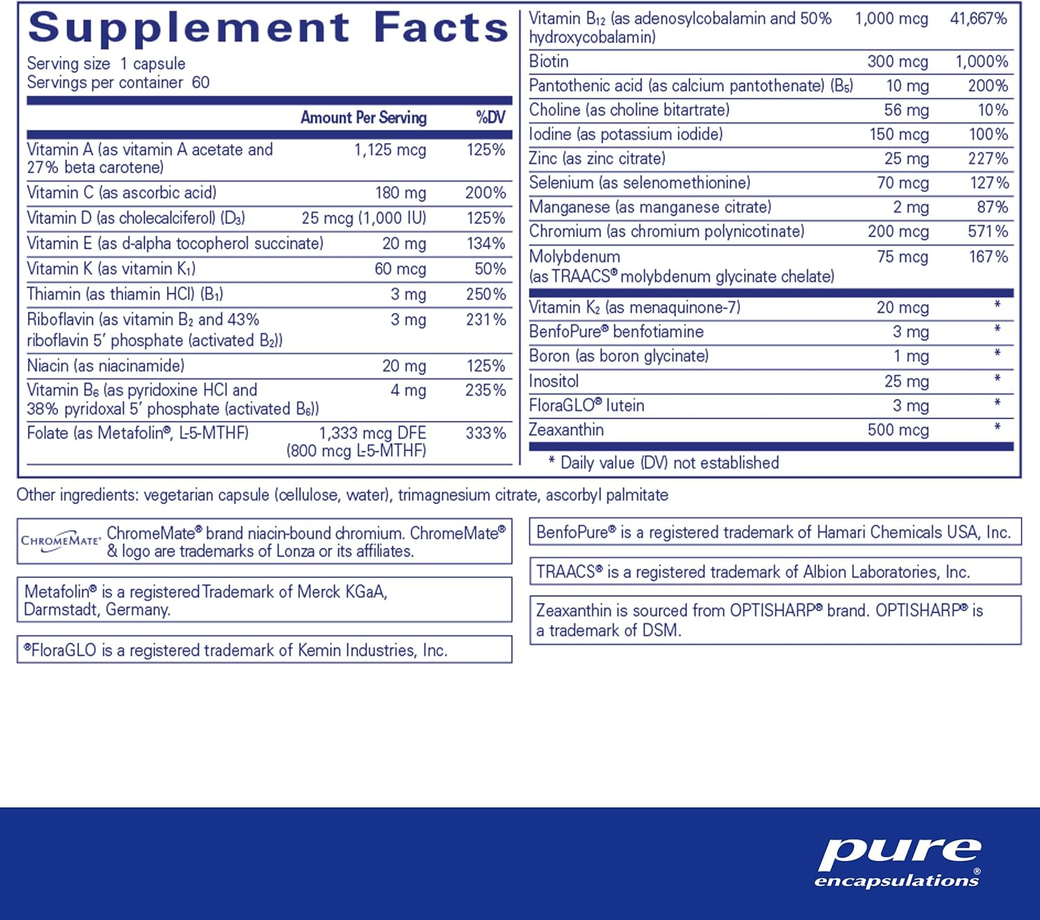 Pure Encapsulations PureGenomics Multivitamin is a nutritionally advanced formula designed to help support daily nutrient needs and overall wellness. It features bioavailable forms of vitamins A, B, C, D, E, and K, along with essential minerals to aid foundational health.