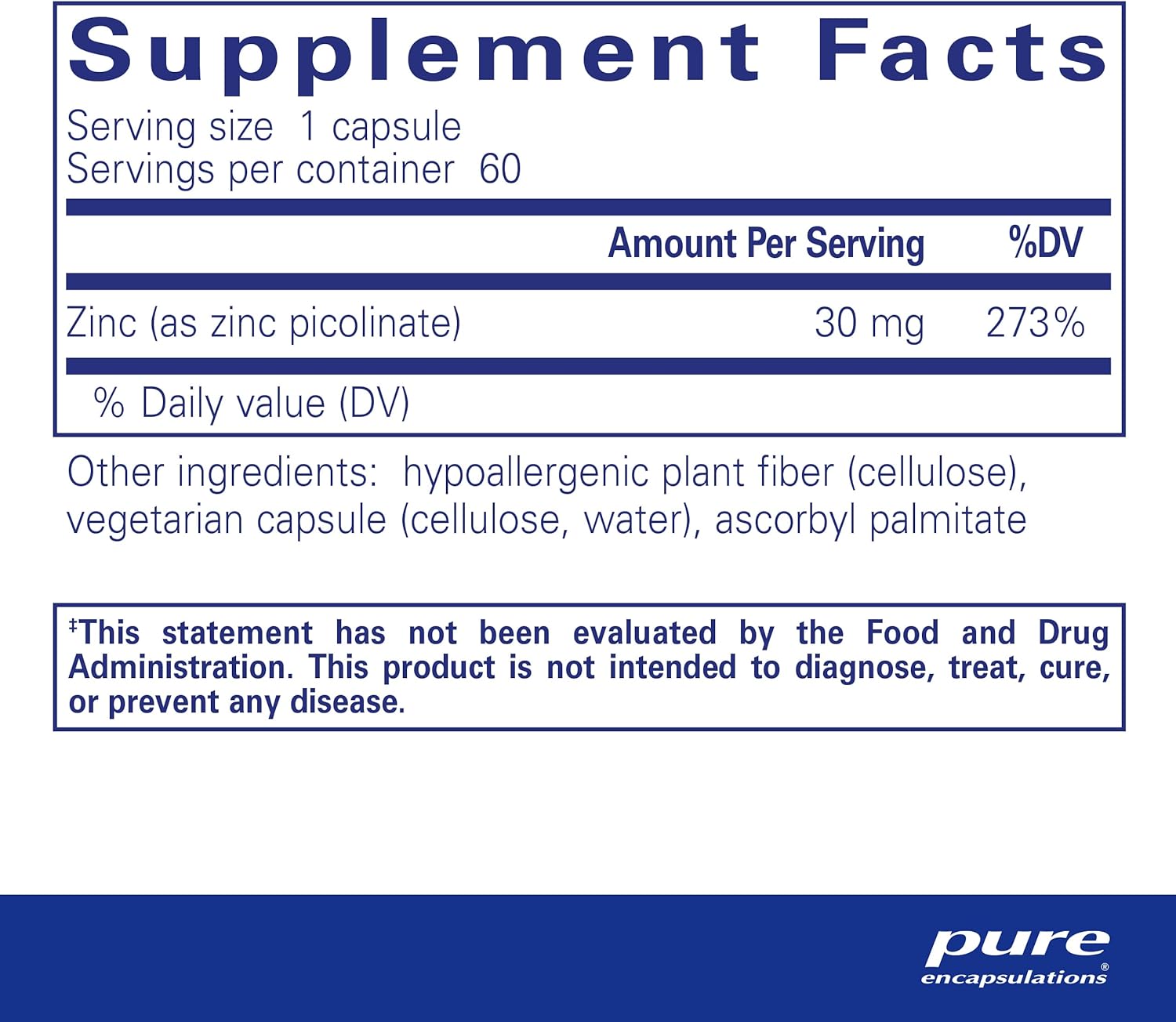 Pure Encapsulations Zinc 30 mg Supports Immune Health Picolinate 60 Capsules