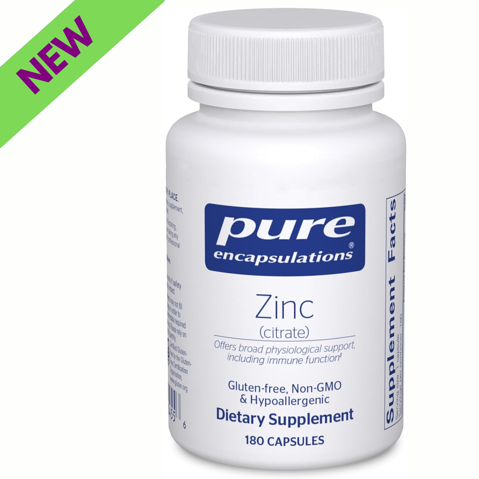 Pure Encapsulations Zinc Citrate 180 Capsules is a highly absorbable mineral supplement designed to support immune function, tissue development, and nutrient metabolism. Each capsule delivers 30 mg of zinc citrate, a form known for its efficient digestion and bioavailability.