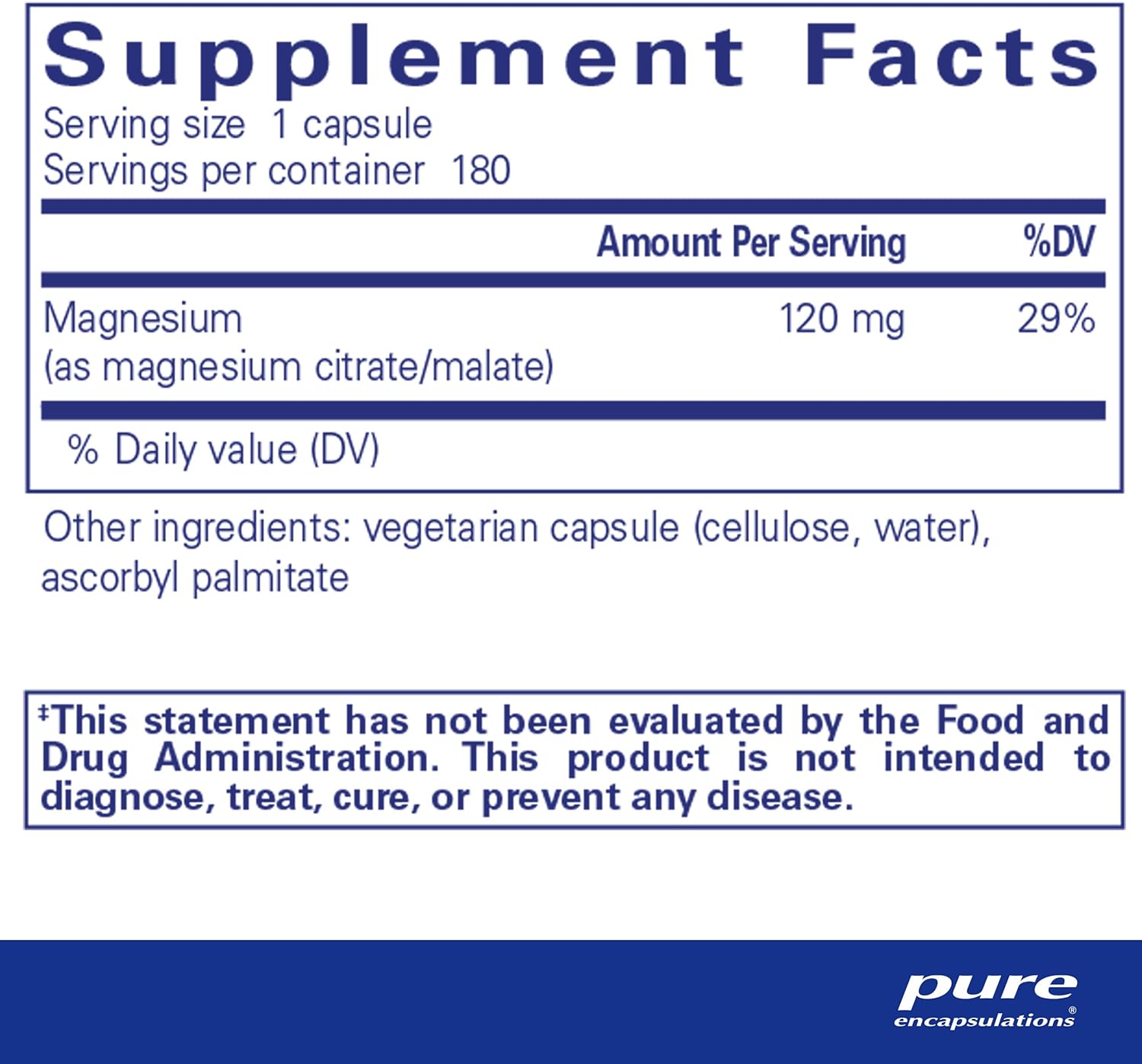 Each vegetarian capsule contains: Magnesium citrate Magnesium malate
