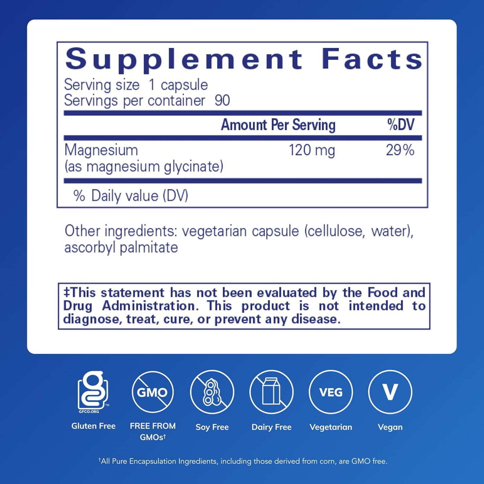 Pure Encapsulations Magnesium Glycinate provides a highly absorbable form of magnesium that helps support stress management, restful sleep, and heart health. This essential mineral activates enzymes needed for muscle and nerve function while promoting balanced energy metabolism.