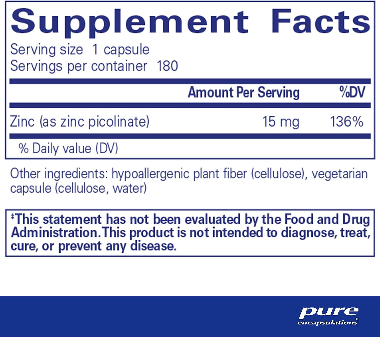 Pure Encapsulations Zinc 15 mg Supports Immune Function Picolinate 180 Capsules