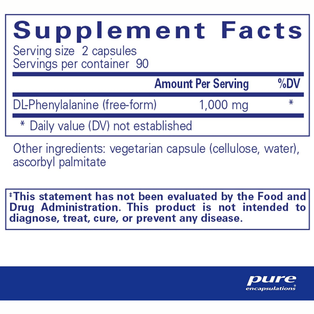 Pure Encapsulations DL Phenylalanine Supports Focus and Mood 180 Capsules
