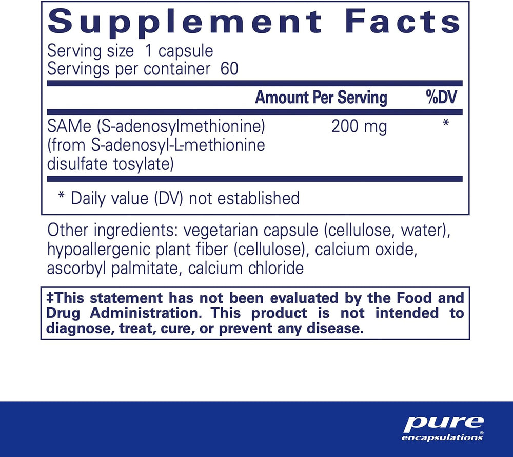 Pure Encapsulations SAMe Supports Joint and Cellular Health 60 Capsules