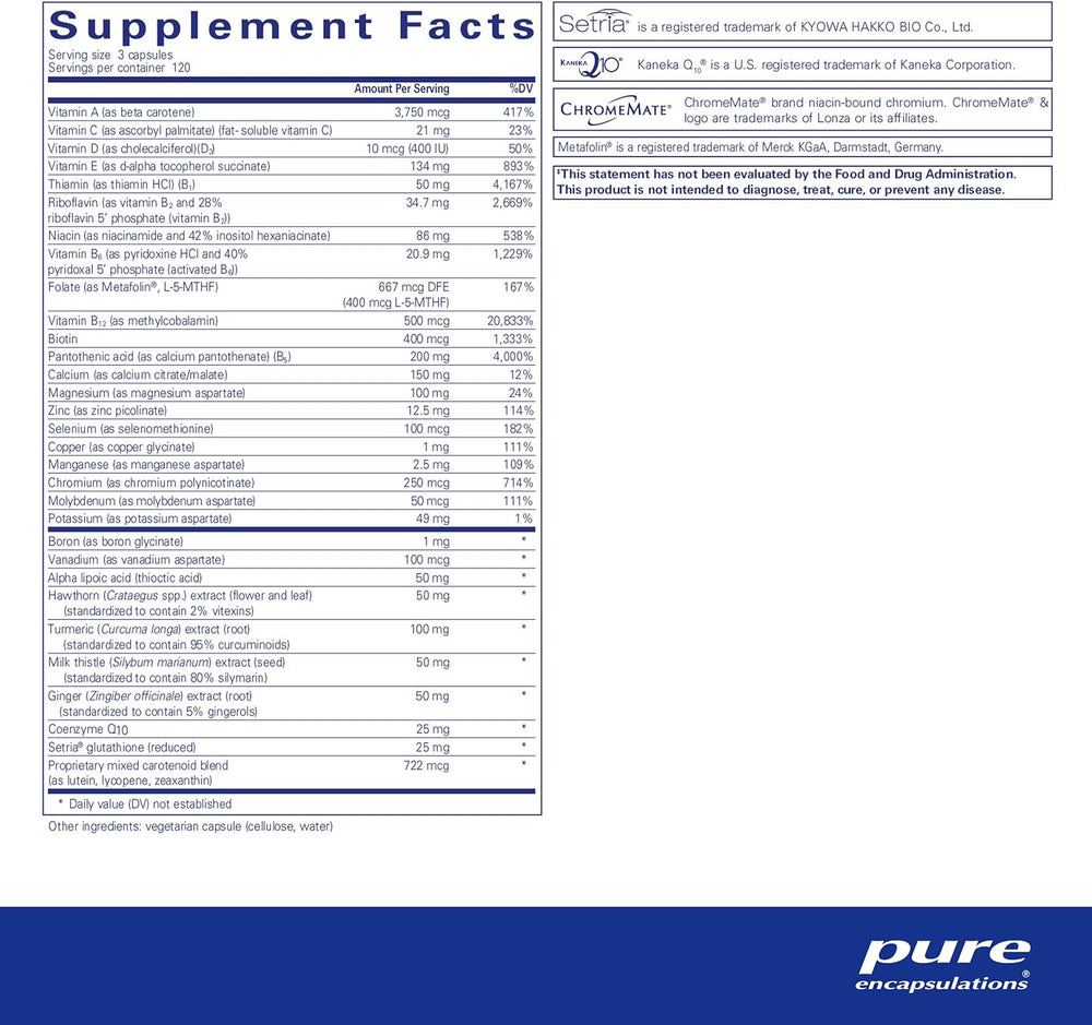 Pure Encapsulations Nutrient 950 with NAC 240 Capsules Multivitamin Mineral