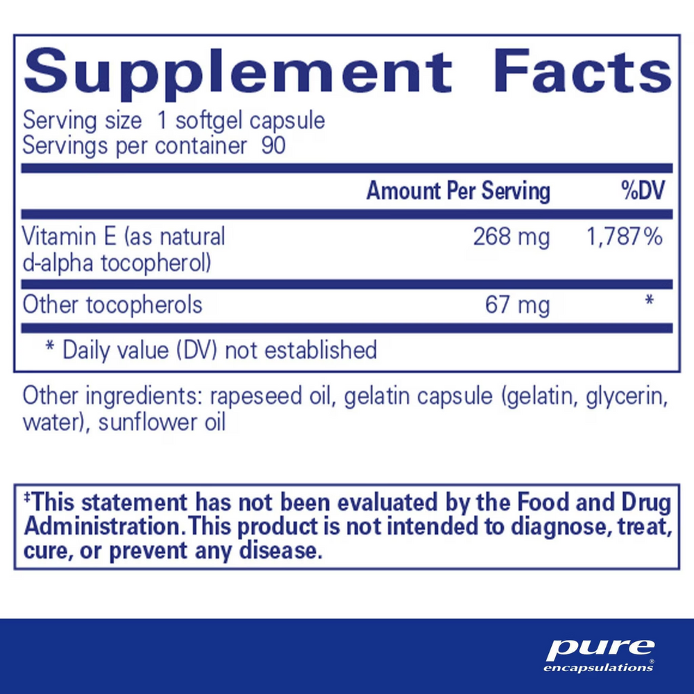 Pure Encapsulations Supports Skin Health Vitamin E 90 Capsules