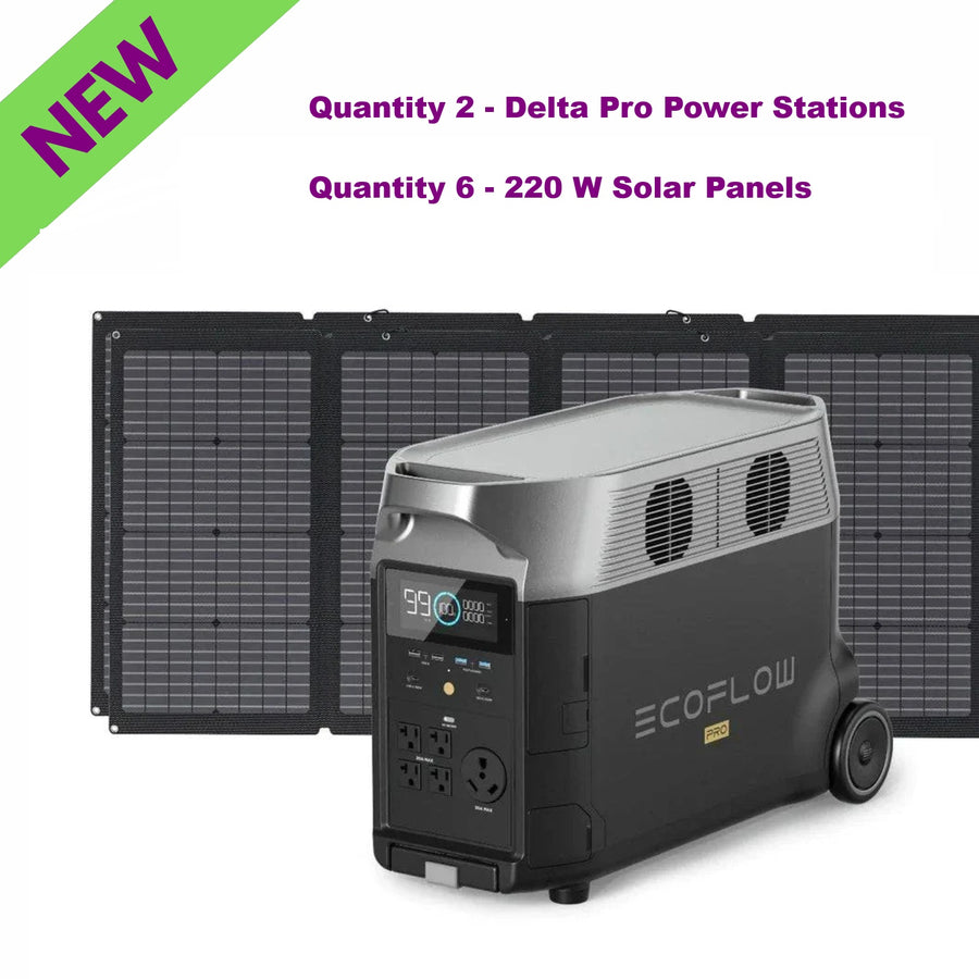 Central eléctrica EcoFlow Delta Pro de 3600 W (cantidad 2) con 6 paneles solares de 220 W