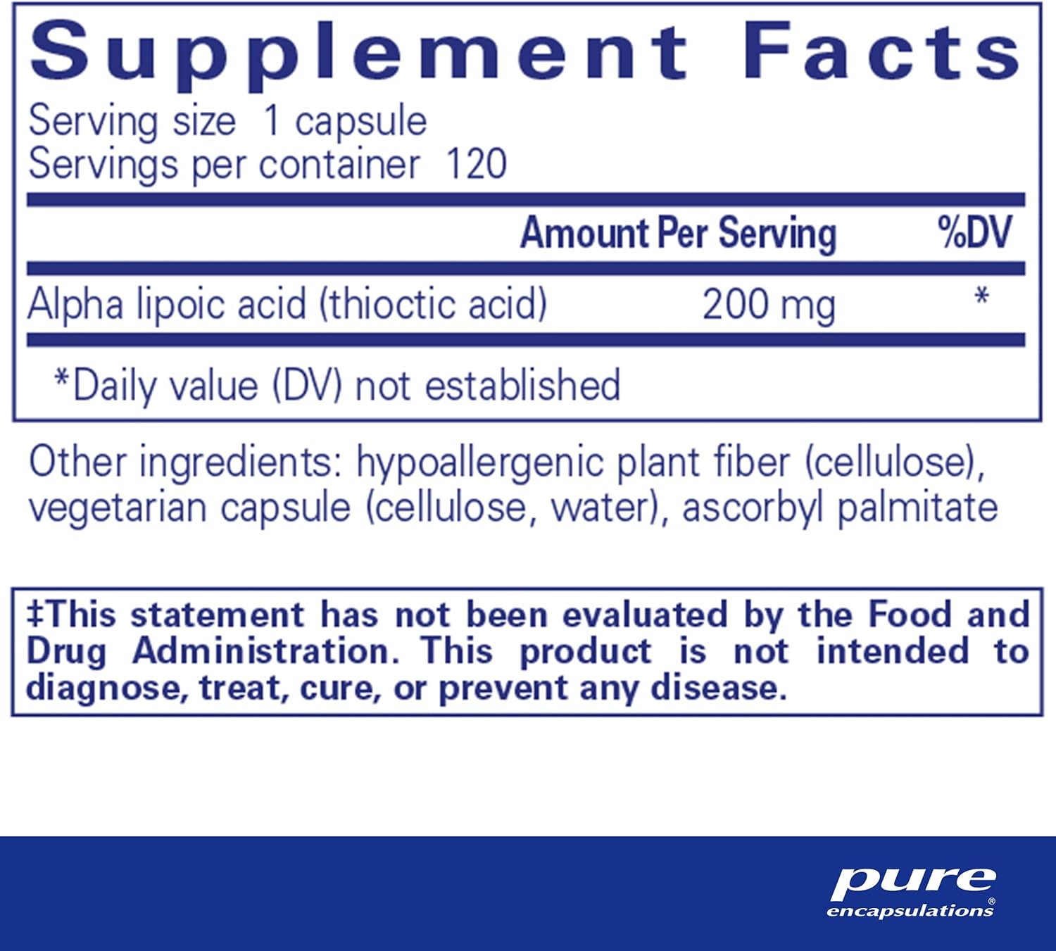 Pure Encapsulations Alpha Lipoic Acid 200 mg Supports Liver Health 120 Capsules