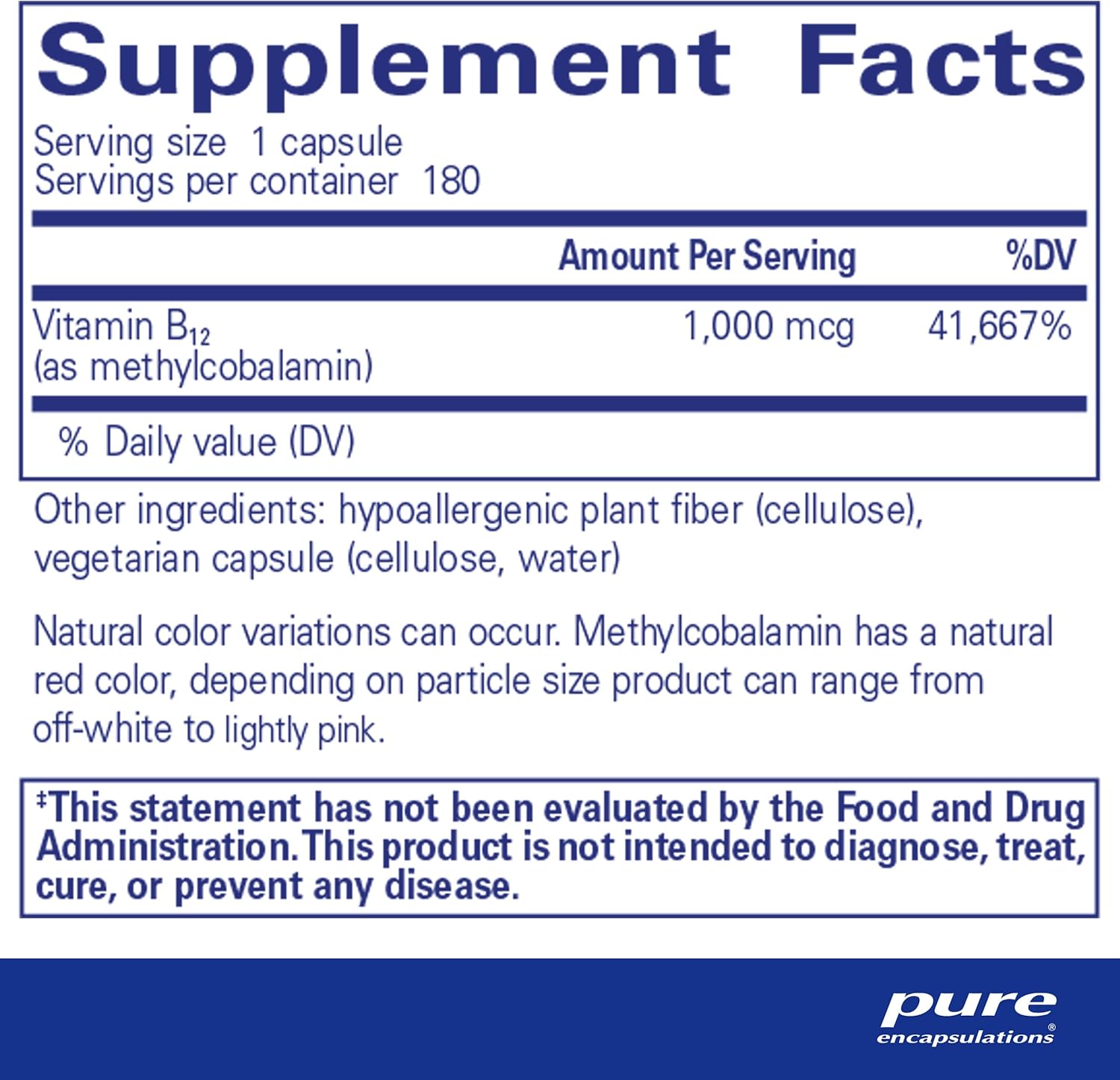 Pure Encapsulations Methylcobalamin B12 Supports Memory Nerves 180 Capsules