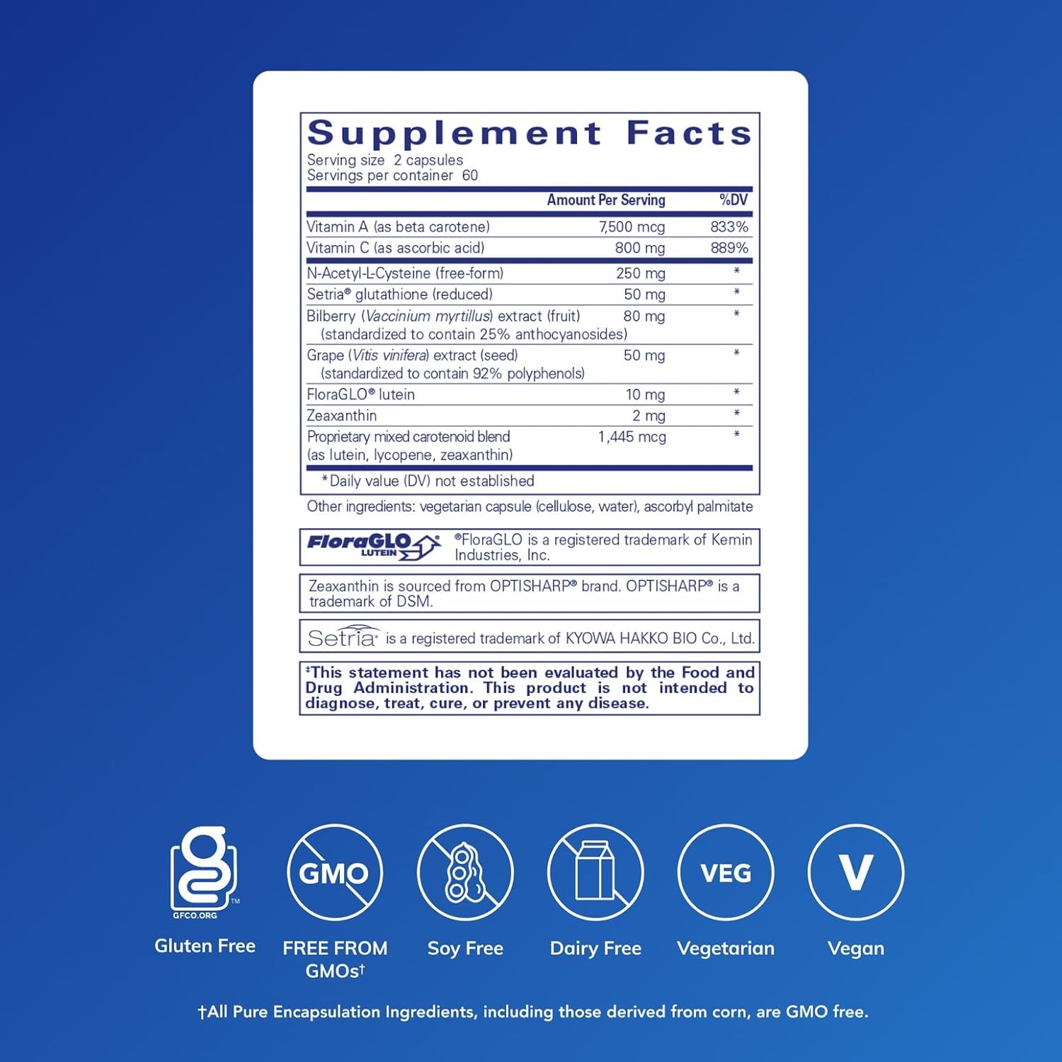 Pure Encapsulations Macular Support Supplement For Health Formula 120 Capsules