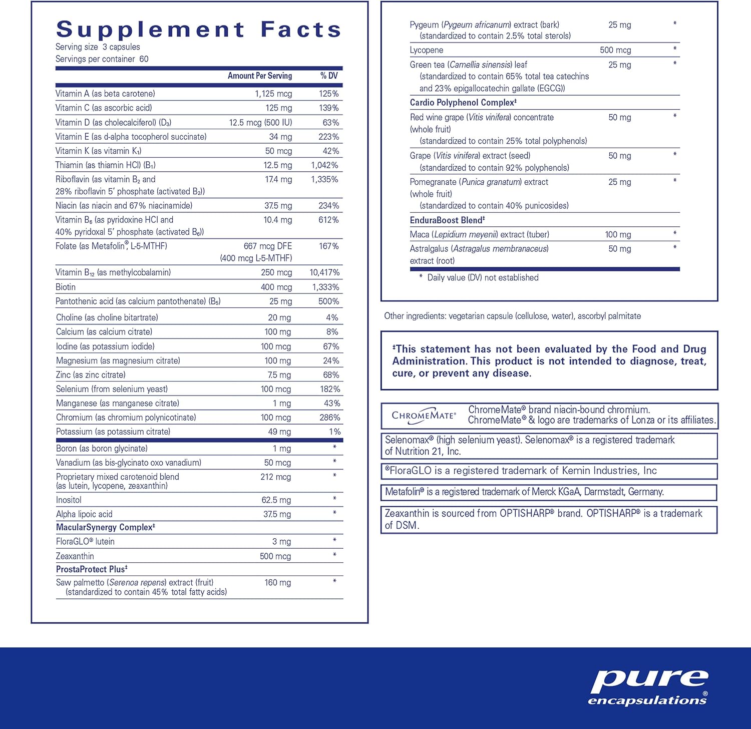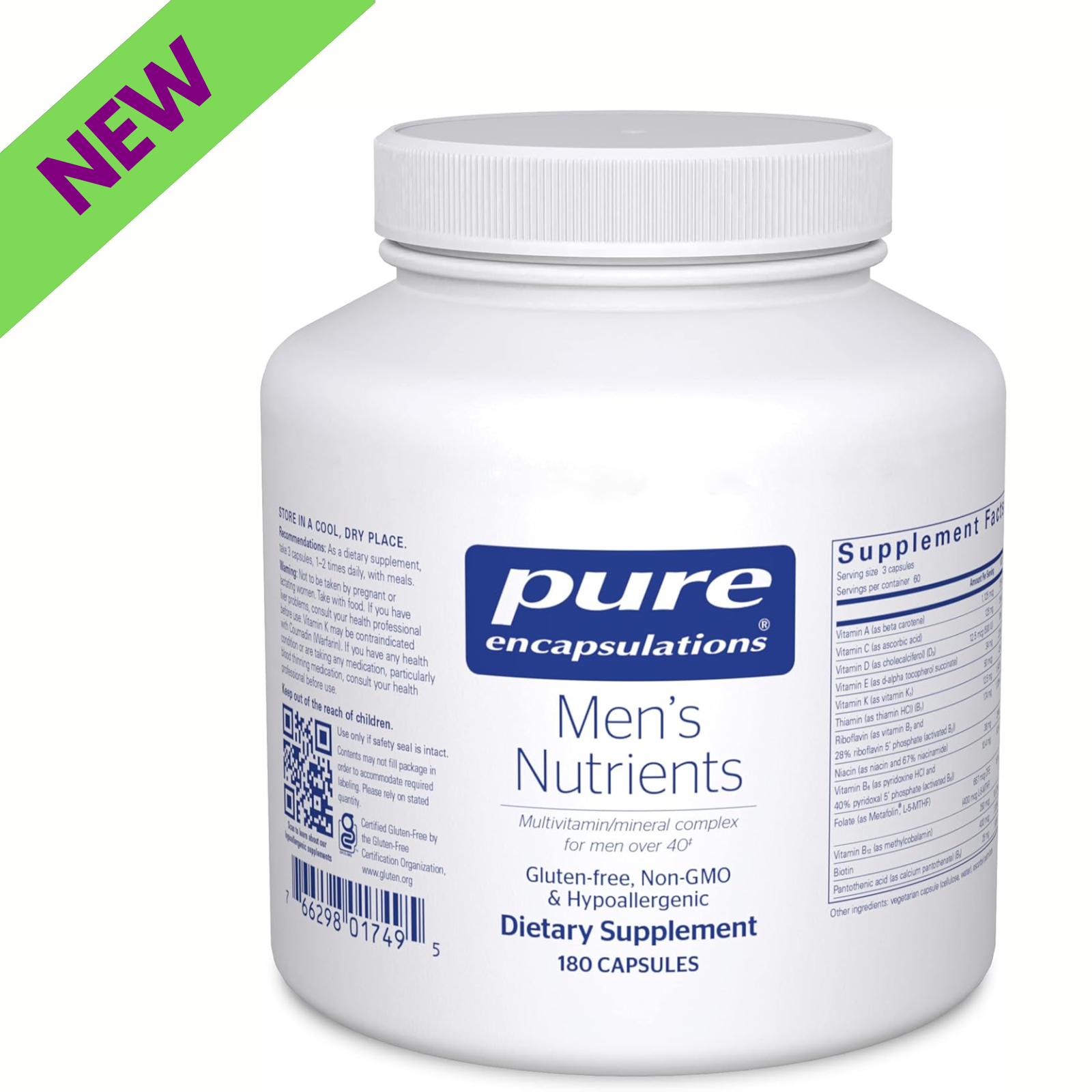 Pure Encapsulations Men's Nutrients is a multivitamin and mineral supplement formulated specifically for men over 40. This advanced blend helps support energy, endurance, and stamina while promoting cardiovascular and visual function.