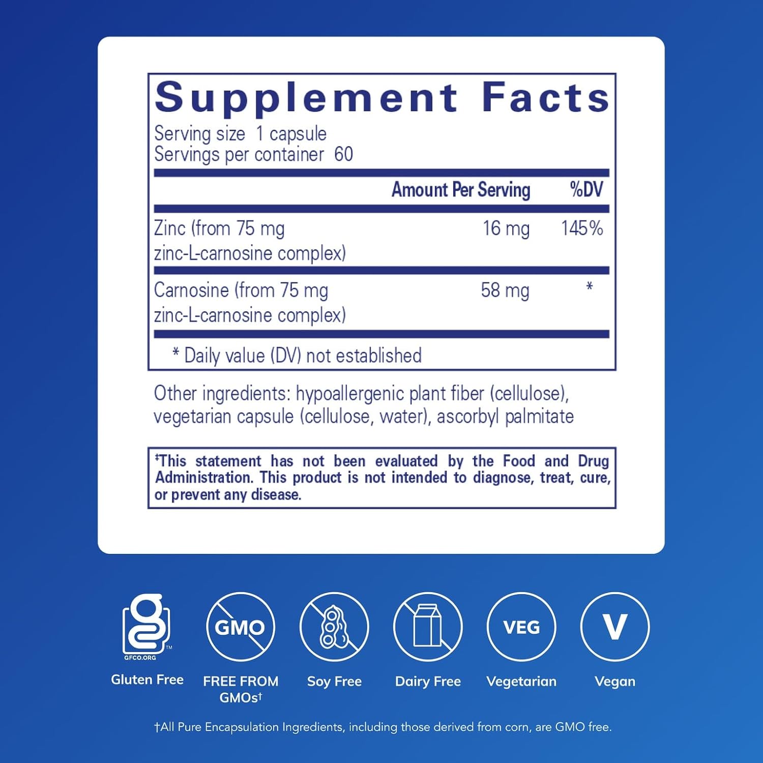 Zinc-L-carnosine helps buffer gastric acid and maintain healthy cytokine release, offering nutritional support for digestive wellness. Manufactured with clean ingredients and free from common allergens and artificial additives, this vegan-friendly supplement promotes balanced gastric function and overall digestive comfort.